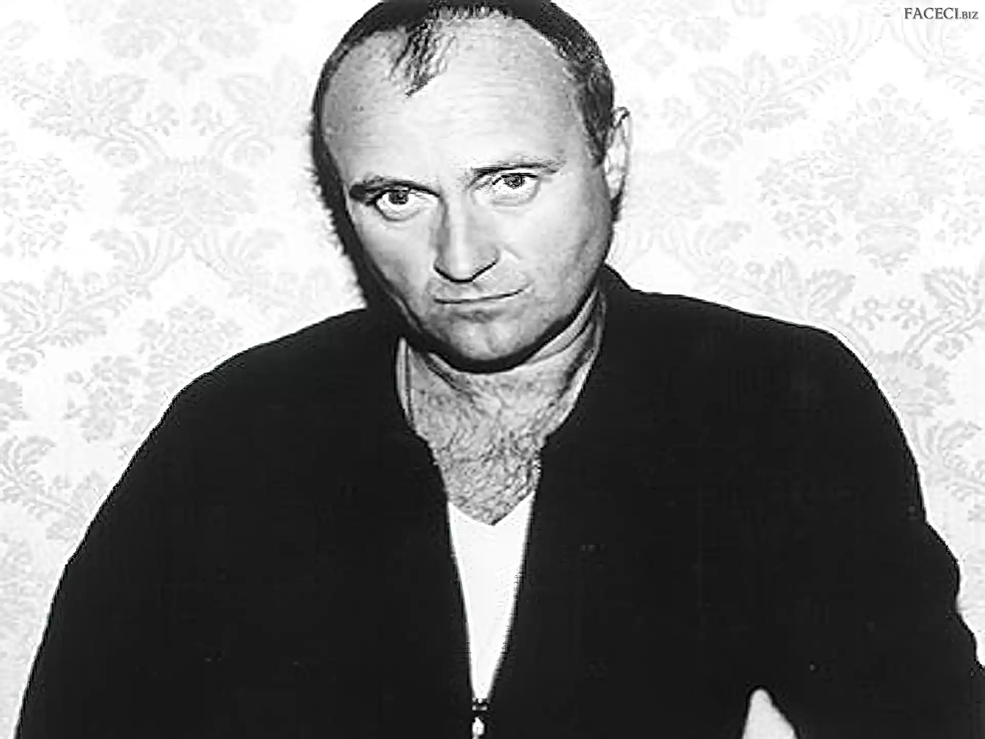 Twarz, Phil Collins Philip David Charles Collins Oczy, Phil Collins Mikrofon, Phil Collins Gwiazda, Phil Collins Mikrofon, Phil Collins Philip David Charles Collins Podkoszulek, Phil Collins, Biały